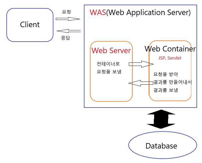 ▷ Web Container(웹 컨테이너) 라고 불린다. WAS는 JSP, Servlet 구동 환경을 제공한다.