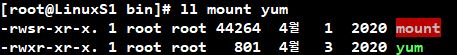 아래 화면처럼 제가 2개의 표본을 들고왔습니다. /bin 파일안에 있는 mount, yum입니다.