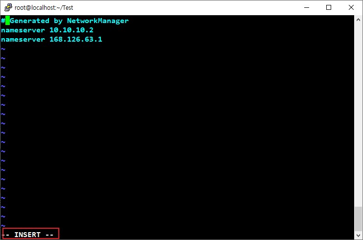 아래화면처럼 INSERT 상태가 되면 입력모드 상태입니다.