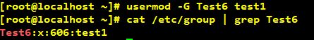 # usermod -G Test6 test1 Test6그룹에 test1사용자 추가