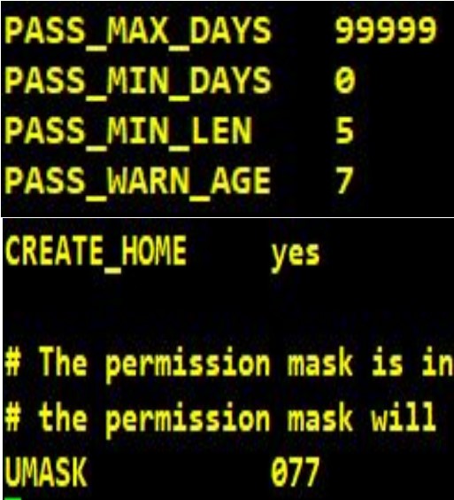 이런 설정들은 /etc/login.defs 에서 변경이 가능하다.