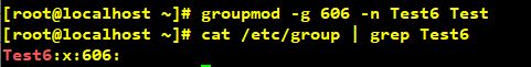 # groupmod -g 606 -n Test6
