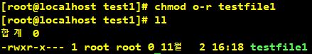 # chmod o-r testfile1 명령어를 입력하게 되면 나머지 사용자에 r권한 삭제