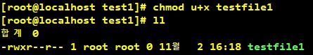 # chmod u+x testfile1 명령어를 입력하게 되면 소유자에 x권한을 추가