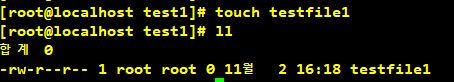 # touch testfile1 명령어로 테스트파일1을 만듭니다.