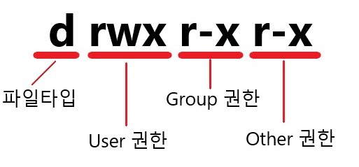 맨 앞자리는 파일 타입을 나타내고, 그 뒤부터 3자리씩 묶어 파일 권한을 나타냅니다.