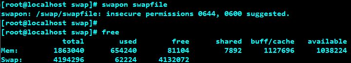 # swapon swapfile 명령어로 swap파일을 활성화시킵니다.
