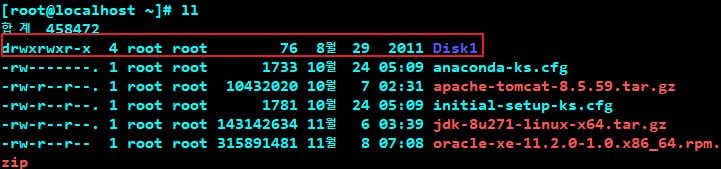# ll 명령어로 확인하면 Disk1이라는 디렉토리가 생성이 되었습니다.