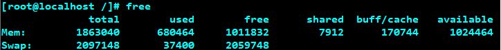 # free 명령어로 공간이 늘어난 것을 확인합니다.