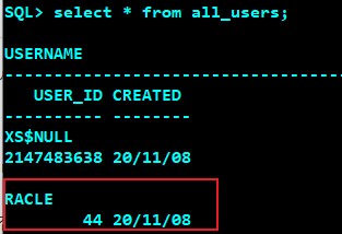 SQL> SELECT * FROM ALL_USERS;