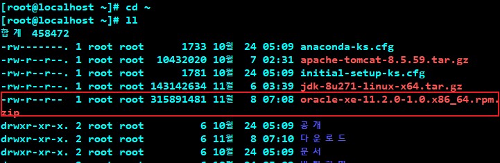 # unzup oracle-xe-11.2.0-1.0.x86_64.rpm.zip 명령어로 압축을 풀어줍니다.