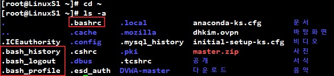 - 예시 : 기존 리눅스 설정 된 쉘이 S라 가정하면, 리눅스가 시작되면서 .bash로 시작하는 파일들이