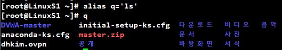 # unalias q 명령어를 통해 명령을 해제 할 수 도 있습니다.
