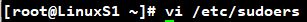 # vi /etc/sudoers 명령어로 파일 수정 모드로 들어가줍니다.