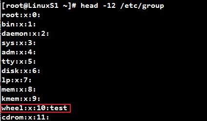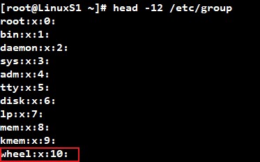 # head -12 /etc/group 명령어로 wheel 그룹에 잘 추가되었는지 확인해보도록 합니다.