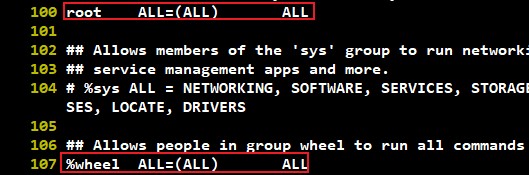 107번째 줄을 보시면 wheel 그룹이 sudo 사용 시 superuser의 권한을 가진다.