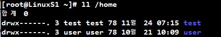 일단 먼저 root계정으로 # ll /home 명령어를 통해 다른 계정이 어떤 것이 있나 확인해봅니다.