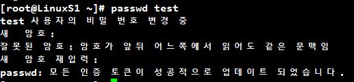 test라는 유저를 생성해줍니다. # passwd test 명령어를 통해 비밀번호도 설정해줍니다.