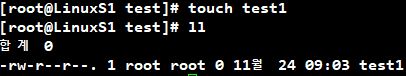 예시) # chmod 755 test 명령어로 test파일/디렉토리에 권한을 줍니다.