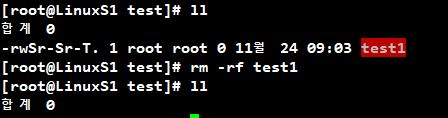 # rm -rf test1 명령어로 test1파일 강제 삭제를 시도했습니다.