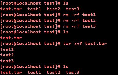 # ls 명령어로 test.tar만 남아있는 것 확인