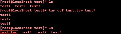 # tar xvf test.tar 명령어로 test.tar 묶은 파일 풀기
