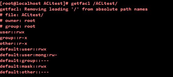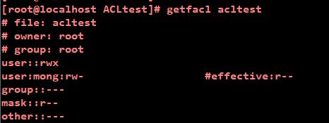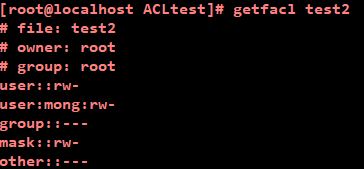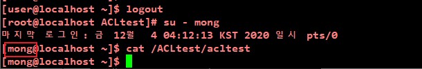 root유저외에 아무도 acltest파일을 열 수가 없지만 방금 ACL설정으로 인해 mong유저는 접근할 수 있습니다.