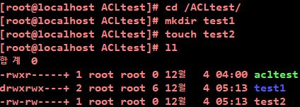 그냥 # ls 명령어로는 ACL권한을 볼 수 없습니다.