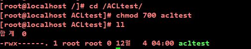 # setfacl -m d:g::0 /ACLtest 디렉토리에 default로 group 권한 0