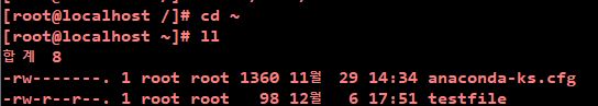 # cd ~ root계정이니까 root 홈 디렉토리로 이동