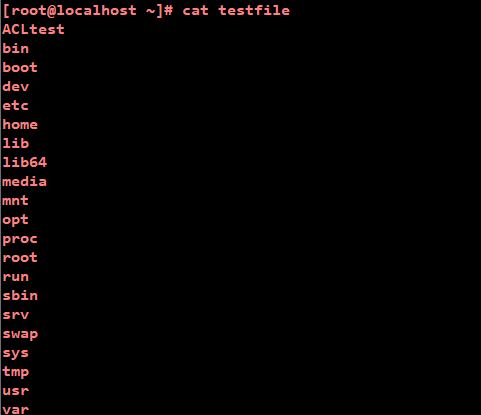 # ls >> /root/testfile 아까와 같이 최상위 디렉토리 리스트 출력값을 testfile에 넣기 (이어쓰기)