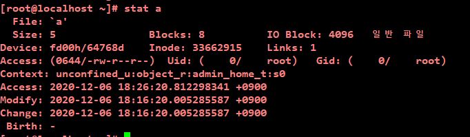 파일명, 크기, i-node번호까지 다 나옵니다. 여기서 중요한 건 시간이 나옵니다.