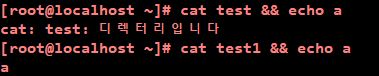 test가 디렉토리라 cat 명령어를 실패하여 다음 명령어를 실행하지 않습니다.