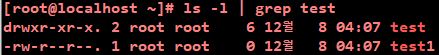 ls -l 명령 결과를 뒤로 넘겨 grep으로 test라는 이름을 가진 것들만 출력