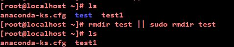 # rmdir test || sudo rmdir test