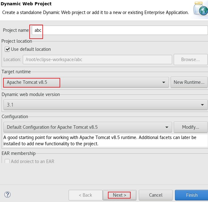 2. 프로젝트 이름을 작성하고, 서버 설정을 한 뒤에 Next를 눌러줍니다.