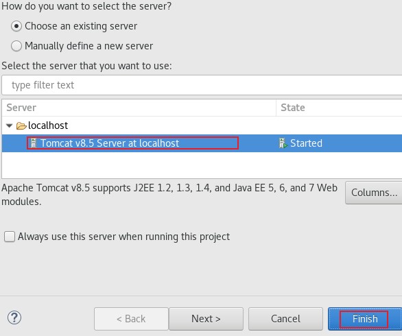 5. 서버만 맞는지 확인하시고 Finish클릭하시면 됩니다.