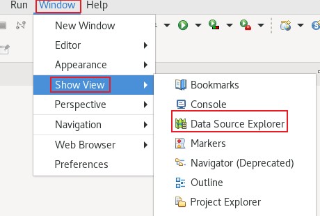 Window탭에서 Show Vies -> Data Source Explorer 클릭하시면 아래에 나타납니다.