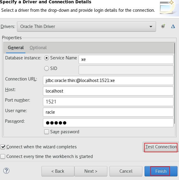 다 입력하시고, Test Connection을 통해 확인 후 Finish를 눌러 완료하시면 됩니다.