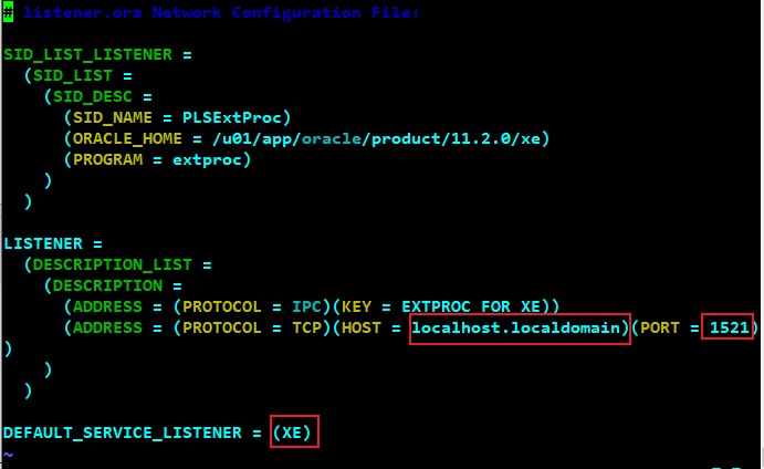 # vi /u01/app/oracle/product/11.2.0/xe/network/admin/listener.ora