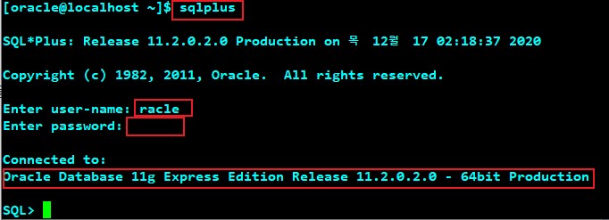 그럼 연결되었다는 문구와 함께 지금 사용하고 있는 오라클DB 버전의 문구가 출력이 됩니다.