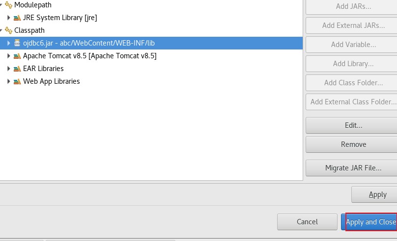 20. 아까 위에서 ojdbc6.jar 문서를 lib에 추가해놨던것을 설정합니다.