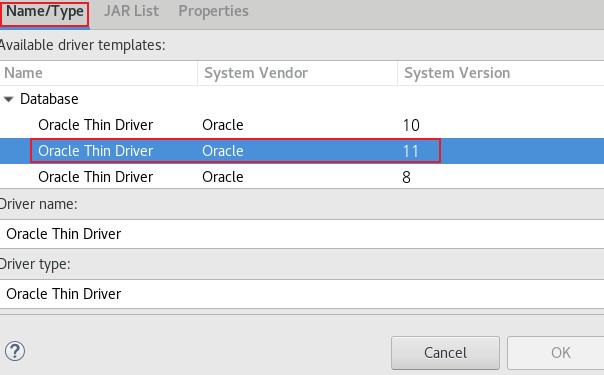 12. Name/Type 탭에서 자신이 다운받은 오라클 버전을 선택합니다.